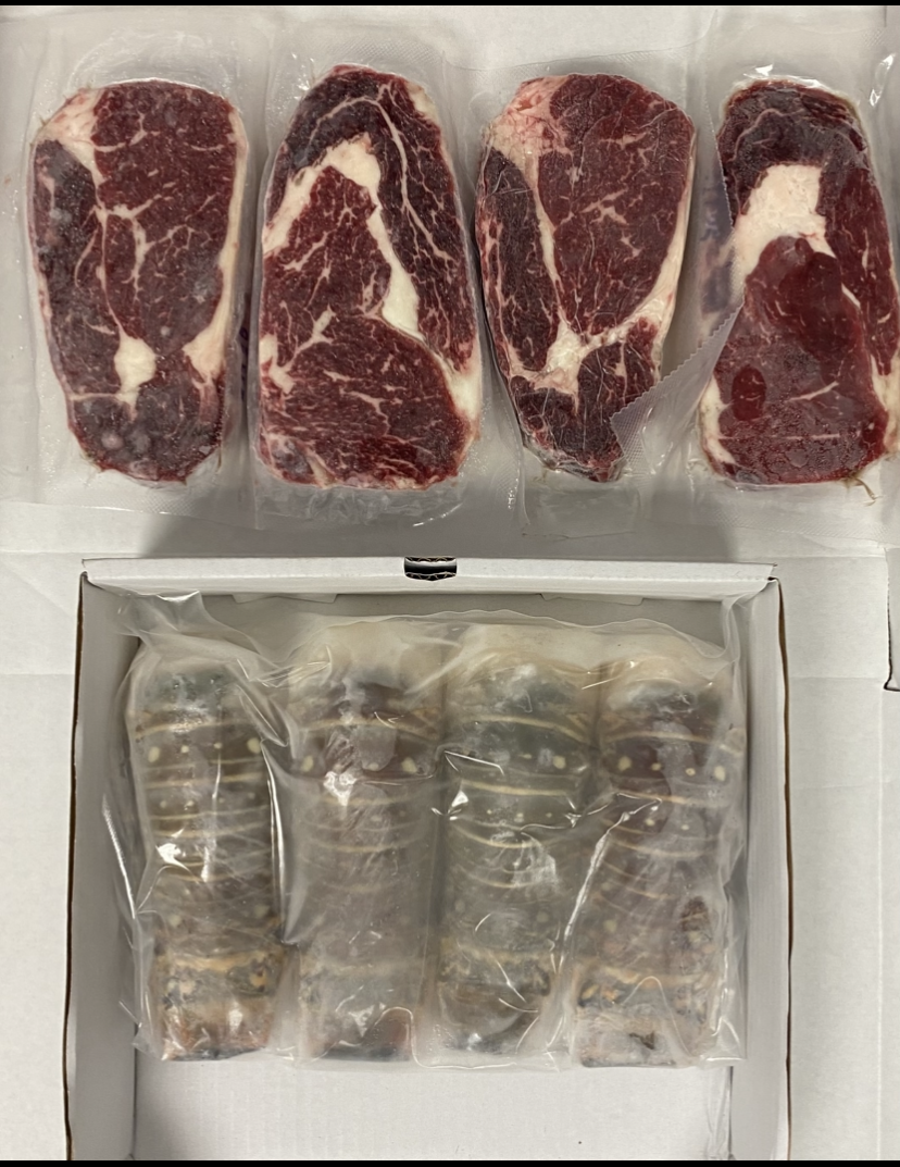 4-12oz Ribeye’s & 4-8oz Lobster Tails